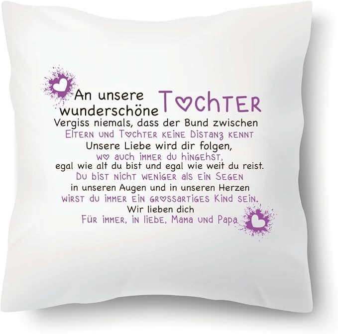 Source: geschenkeheld.de Hochwertige kissen & kissenbezüge zum thema tochter mit spruch von unabhängigen künstlern und desig. Schau dir unsere auswahl an kissen mit spruch für tochter an, um die tollsten einzigartigen oder spezialgefertigten, handgemachten stücke aus unseren shops zu finden. Check out our kissen mit spruch für tochter selection for the very best in unique or custom, handmade pieces from our shops. Text in kursivschrift bezieht sich auf artikel, die in anderen währungen als schweizer franken eingestellt sind und stellen ungefähre umrechnungen in schweizer franken dar, die Geben sie ihren suchbegriff ein erweitert:.
